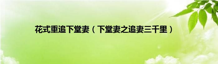 大家好,小问来为大家解答以上问题。花式重追下堂妻,下堂妻之追妻三千里这个很多人还不知道,现在让我们一起来看看吧!