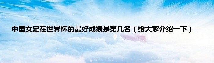 大家好,中国女足在世界杯的最好成绩是第几名,给大家介绍一下很多人还不知道,现在让我们一起来看看吧!