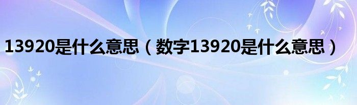 本文,13920是什么意思,数字13920是什么意思到此就分享完毕,希望对大家有所帮助。