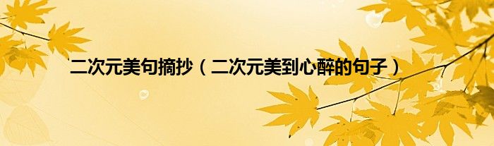 本文,二次元美句摘抄,二次元美到心醉的句子到此就分享完毕,希望对大家有所帮助。