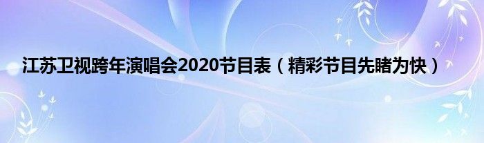 大家好,江苏卫视跨年演唱会2020节目表,精彩节目先睹为快很多人还不知道,现在让我们一起来看看吧!