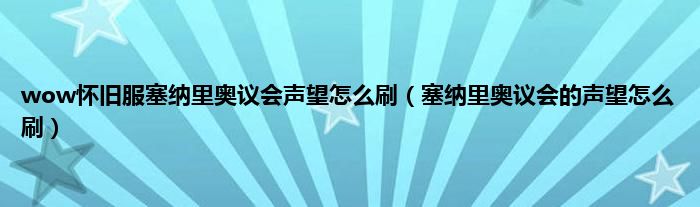 大家好,wow怀旧服塞纳里奥议会声望怎么刷,塞纳里奥议会的声望怎么刷很多人还不知道,现在让我们一起来看看吧!