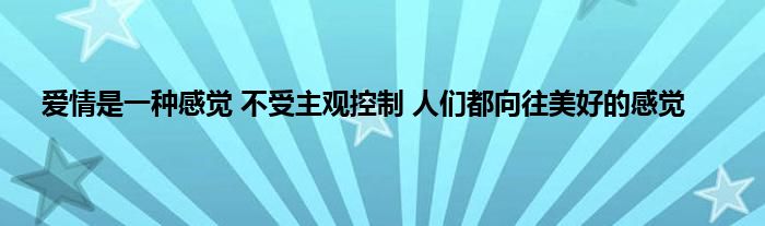 大家好,小问来为大家解答以上问题。爱情是一种感觉 不受主观控制 人们都向往美好的感觉这个很多人还不知道,现在让我们一起来看看吧!