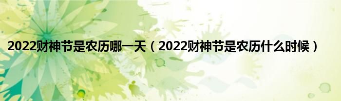 本文,2022财神节是农历哪一天,2022财神节是农历什么时候到此就分享完毕,希望对大家有所帮助。