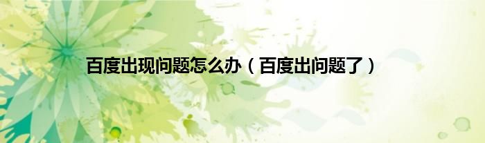 大家好,小问来为大家解答以上问题。百度出现问题怎么办,百度出问题了这个很多人还不知道,现在让我们一起来看看吧!