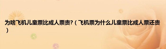 本文,为啥飞机儿童票比成人票贵?,飞机票为什么儿童票比成人票还贵到此就分享完毕,希望对大家有所帮助。