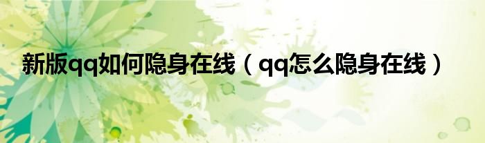 新版qq如何隐身在线(qq怎么隐身在线)
