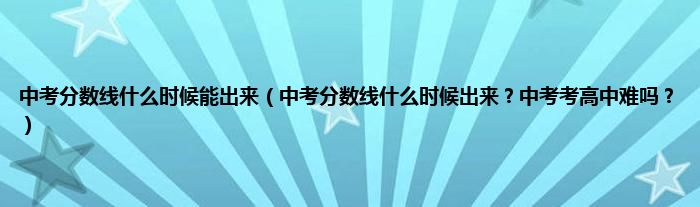 大家好,中考分数线什么时候能出来,中考分数线什么时候出来?中考考高中难吗?很多人还不知道,现在让我们一起来看看吧!
