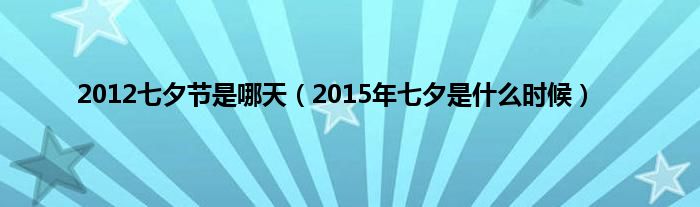 本文,2012七夕节是哪天,2015年七夕是什么时候到此就分享完毕,希望对大家有所帮助。