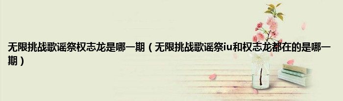本文,无限挑战歌谣祭权志龙是哪一期,无限挑战歌谣祭iu和权志龙都在的是哪一期到此就分享完毕,希望对大家有所帮助。