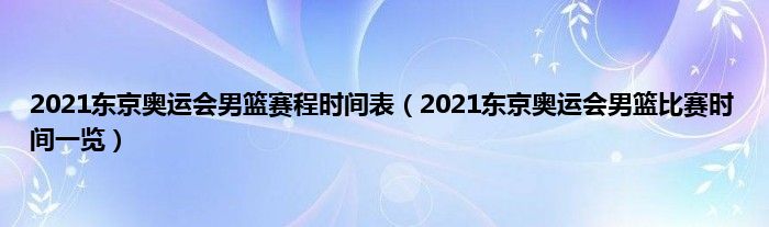 本文,2021东京奥运会男篮赛程时间表,2021东京奥运会男篮比赛时间一览到此就分享完毕,希望对大家有所帮助。