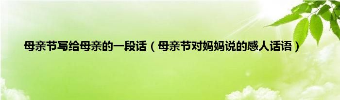本文,母亲节写给母亲的一段话,母亲节对妈妈说的感人话语到此就分享完毕,希望对大家有所帮助。