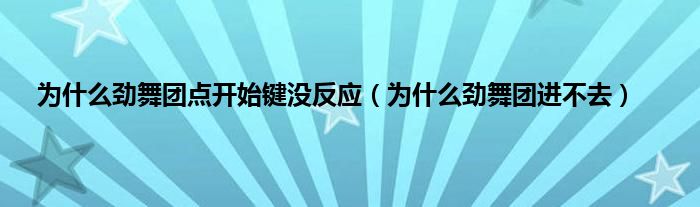 以上就是【为什么劲舞团点开始键没反应,为什么劲舞团进不去】相关内容。
