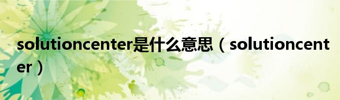 以上就是【solutioncenter是什么意思,solutioncenter】相关内容。