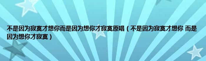 不是因为寂寞才想你而是因为想你才寂寞原唱(不是因为寂寞才想你而是因为想你才寂寞)