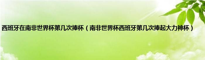 大家好,小问来为大家解答以上问题。西班牙在南非世界杯第几次捧杯,南非世界杯西班牙第几次捧起大力神杯这个很多人还不知道,现在让我们一起来看看吧!