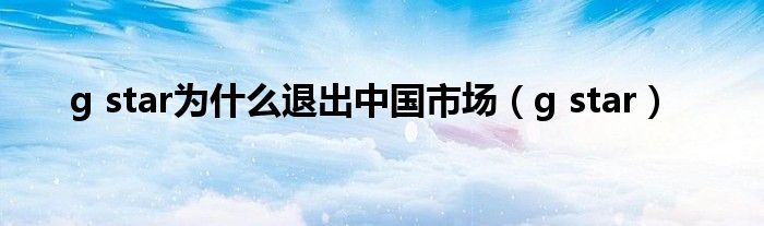 大家好,小问来为大家解答以上问题。g star为什么退出中国市场,g star这个很多人还不知道,现在让我们一起来看看吧!