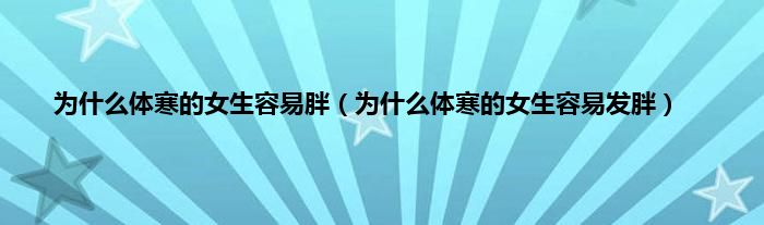 以上就是【为什么体寒的女生容易胖,为什么体寒的女生容易发胖】相关内容。