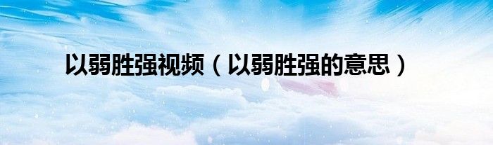 大家好,小问来为大家解答以上问题。以弱胜强视频,以弱胜强的意思这个很多人还不知道,现在让我们一起来看看吧!