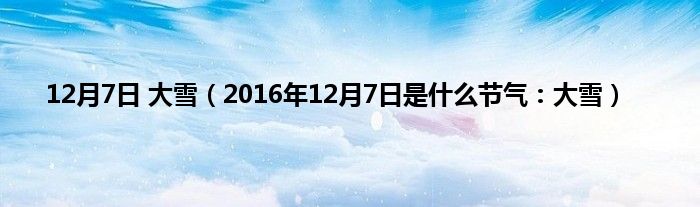 大家好,综合小编来为大家讲解下。12月7日 大雪,2016年12月7日是什么节气:大雪这个很多人还不知道,现在让我们一起来看看吧!