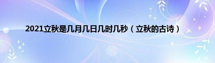 大家好,综合小编来为大家讲解下。2021立秋是几月几日几时几秒,立秋的古诗这个很多人还不知道,现在让我们一起来看看吧!