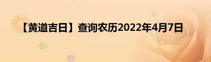 大家好,综合小编来为大家讲解下。【黄道吉日】查询农历2022年4月7日这个很多人还不知道,现在让我们一起来看看吧!