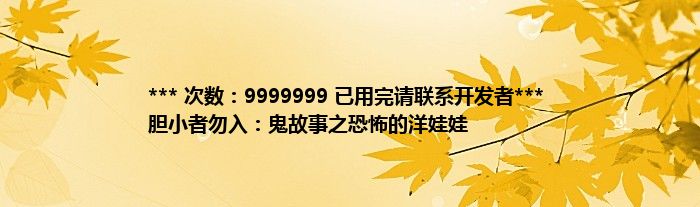 本文*** 次数:9999999 已用完请联系开发者*** 胆小者勿入:鬼故事之恐怖的洋娃娃到此分享完毕,希望对大家有所帮助。