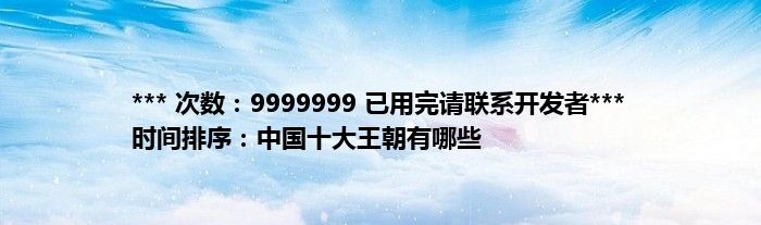 大家好,综合小编来为大家讲解下。*** 次数:9999999 已用完请联系开发者*** 时间排序:中国十大王朝有哪些这个很多人还不知道,现在让我们一起来看看吧!
