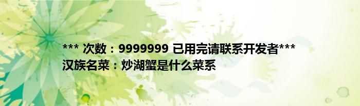 本文*** 次数:9999999 已用完请联系开发者*** 汉族名菜:炒湖蟹是什么菜系到此分享完毕,希望对大家有所帮助。