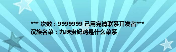 本文*** 次数:9999999 已用完请联系开发者*** 汉族名菜:九味贵妃鸡是什么菜系到此分享完毕,希望对大家有所帮助。
