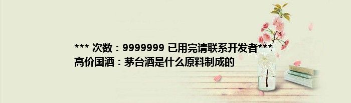 大家好,综合小编来为大家讲解下。*** 次数:9999999 已用完请联系开发者*** 高价国酒:茅台酒是什么原料制成的这个很多人还不知道,现在让我们一起来看看吧!