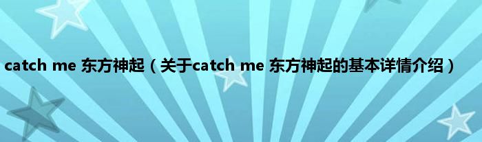 catchme东方神起(关于catchme东方神起的基本详情介绍)