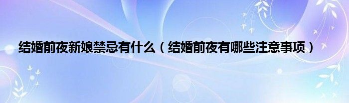 结婚前夜新娘禁忌有什么(结婚前夜有哪些注意事项)