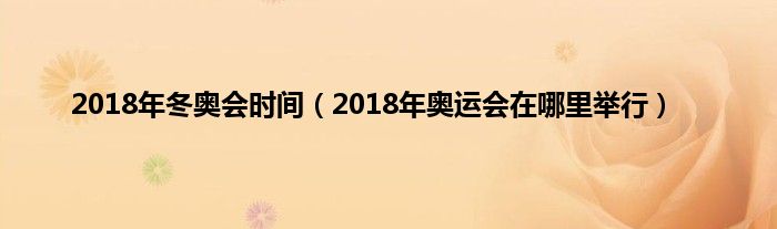 大家好,综合小编来为大家讲解下。2018年冬奥会时间,2018年奥运会在哪里举行这个很多人还不知道,现在让我们一起来看看吧!