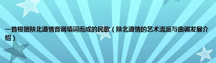 大家好,综合小编来为大家讲解下。一首根据陕北道情音调填词而成的民歌,陕北道情的艺术流派与曲调发展介绍这个很多人还不知道,现在让我们一起来看看吧!
