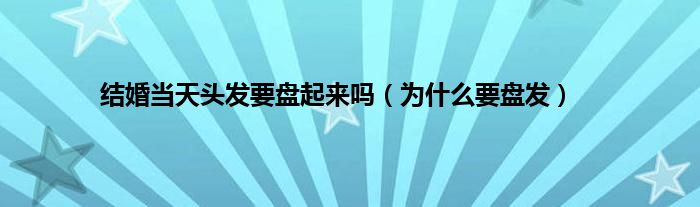 大家好,综合小编来为大家讲解下。结婚当天头发要盘起来吗,为什么要盘发这个很多人还不知道,现在让我们一起来看看吧!