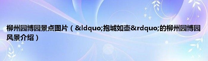 本文柳州园博园景点图片,“抱城如壶”的柳州园博园风景介绍到此分享完毕,希望对大家有所帮助。