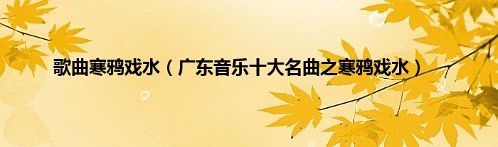 本文歌曲寒鸦戏水,广东音乐十大名曲之寒鸦戏水到此分享完毕,希望对大家有所帮助。