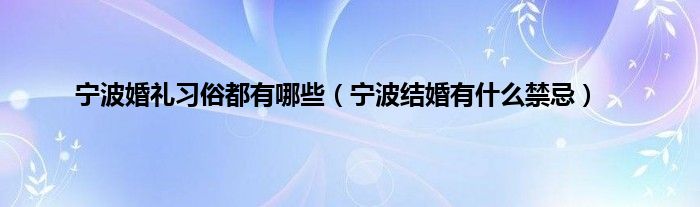 大家好,综合小编来为大家讲解下。宁波婚礼习俗都有哪些,宁波结婚有什么禁忌这个很多人还不知道,现在让我们一起来看看吧!