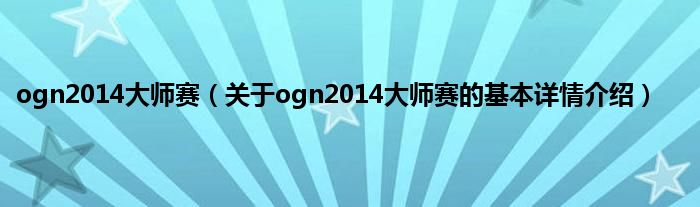 本文关于ogn2014大师赛的基本详情介绍就讲解完毕,希望对大家有所帮助。