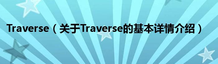 大家好我是小蝌蚪,Traverse,关于Traverse的基本详情介绍很多人还不知道,那么现在让我们一起来看看吧!