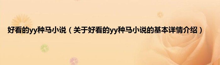 本文关于好看的yy种马小说的基本详情介绍就讲解完毕,希望对大家有所帮助。