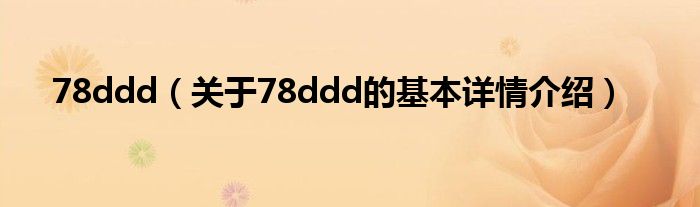 本文关于78ddd的基本详情介绍就讲解完毕,希望对大家有所帮助。