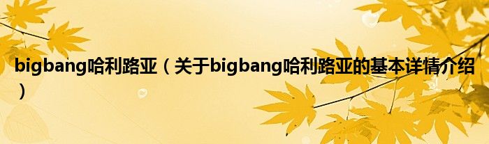 本文关于bigbang哈利路亚的基本详情介绍就讲解完毕,希望对大家有所帮助。