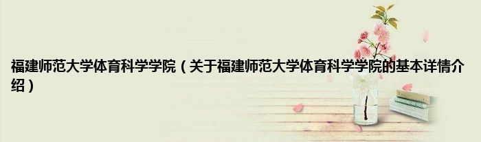 本文关于福建师范大学体育科学学院的基本详情介绍就讲解完毕,希望对大家有所帮助。