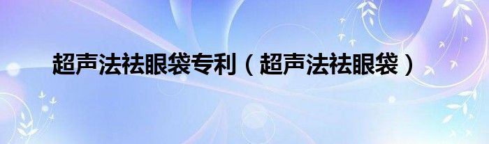 以上就是【超声法祛眼袋专利,超声法祛眼袋】相关内容。