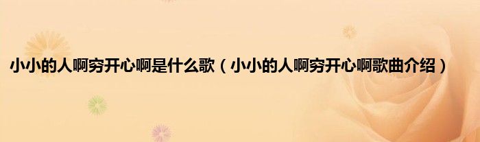 欢迎观看本篇文章,小升来为大家解答以上问题。小小的人啊穷开心啊是什么歌,小小的人啊穷开心啊歌曲介绍很多人还不知道,现在让我们一起来看看吧!