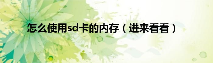 欢迎观看本篇文章,小升来为大家解答以上问题。怎么使用sd卡的内存,进来看看很多人还不知道,现在让我们一起来看看吧!