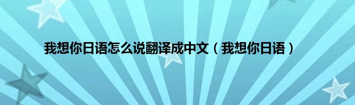 大家好,小问来为大家解答以上问题。我想你日语怎么说翻译成中文,我想你日语这个很多人还不知道,现在让我们一起来看看吧!