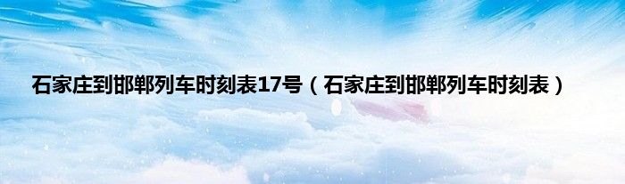 以上就是【石家庄到邯郸列车时刻表17号,石家庄到邯郸列车时刻表】相关内容。